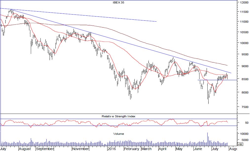 El Ibex 35 ha tenido su primera entrada en la banda de los 8.600-9.000 puntos, es una zona muy difícil, pero es la clave, técnicamente, para pasar de rebote a cambio de tendencia. Por abajo, mientras no pierda los 8.450 puntos, sigue alcista.