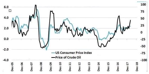 2º Gráfico: la correlación entre el petróleo y los precios de consumo en USA. Aquí la correlación es perfecta, como suele ser habitualmente.