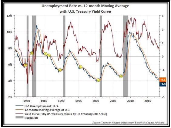 Más importante aún, desde el punto de vista de la predicción de recesión, hay que decir que cuando la tasa de desempleo cruza el promedio móvil de 12 meses de la tasa de desempleo, actúa como una mejor predicción de recesión. La curva de rendimiento es ciertamente aplastante, pero aún no se ha invertido.