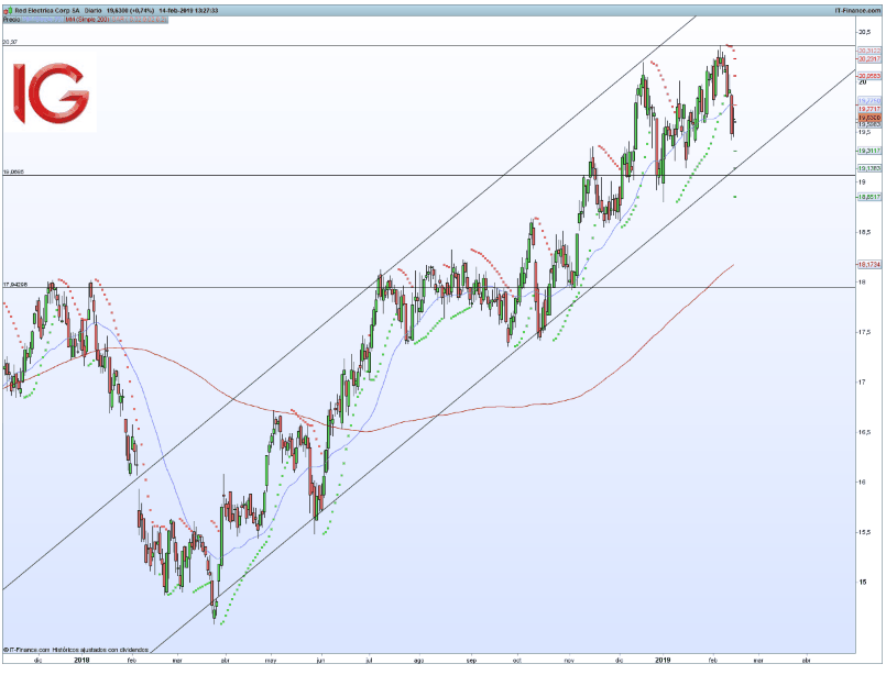 Mientras el precio se mantenga por encima de los 19,06 euros no encontraríamos una confirmación de cambio de tendencia.