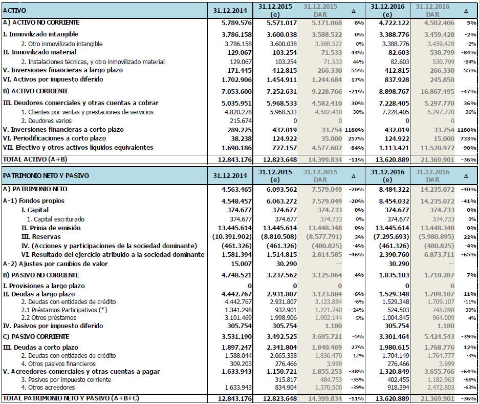 Conviene recordar que en el anterior DAC de 2014 no se incluía esta partida en el neto, solo se estimaban 657.223€ para el cierre del ejercicio y posteriormente se aplicaron impulsando el resultado neto hasta 1.581.394€