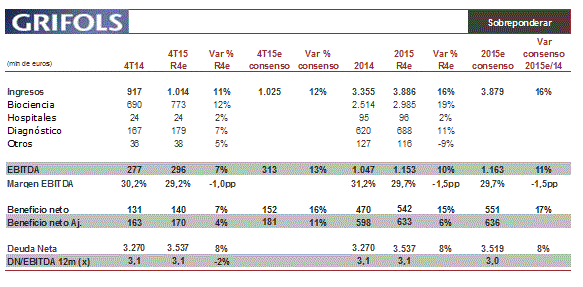 Grifols publica resultados 4T15 el lunes, 29 de febrero antes de la apertura del mercado. No habrá conferencia.
